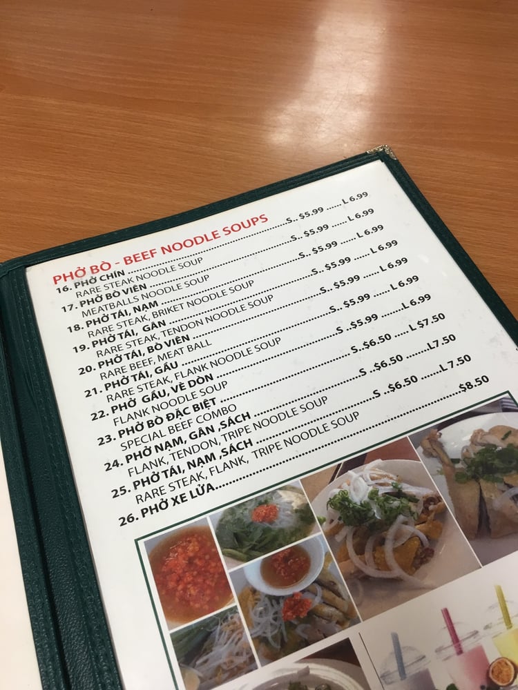 Phở Sông Hải Menu